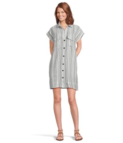 Cool and crisp, this Madewell Sammy Shirt Dress in breathable linen features a classic blue and white striped pattern all over a mini length silhouette. The V-neck collar, front button closure, and dolman half sleeves create a relaxed yet structured fit perfect for warm spring and summer days. Functional flap chest pockets add a practical touch to this casual chic dress. Ideal for everyday wear, vacation getaways, or casual brunches, this versatile dress pairs effortlessly with layers or stands alone for timeless style and comfort.