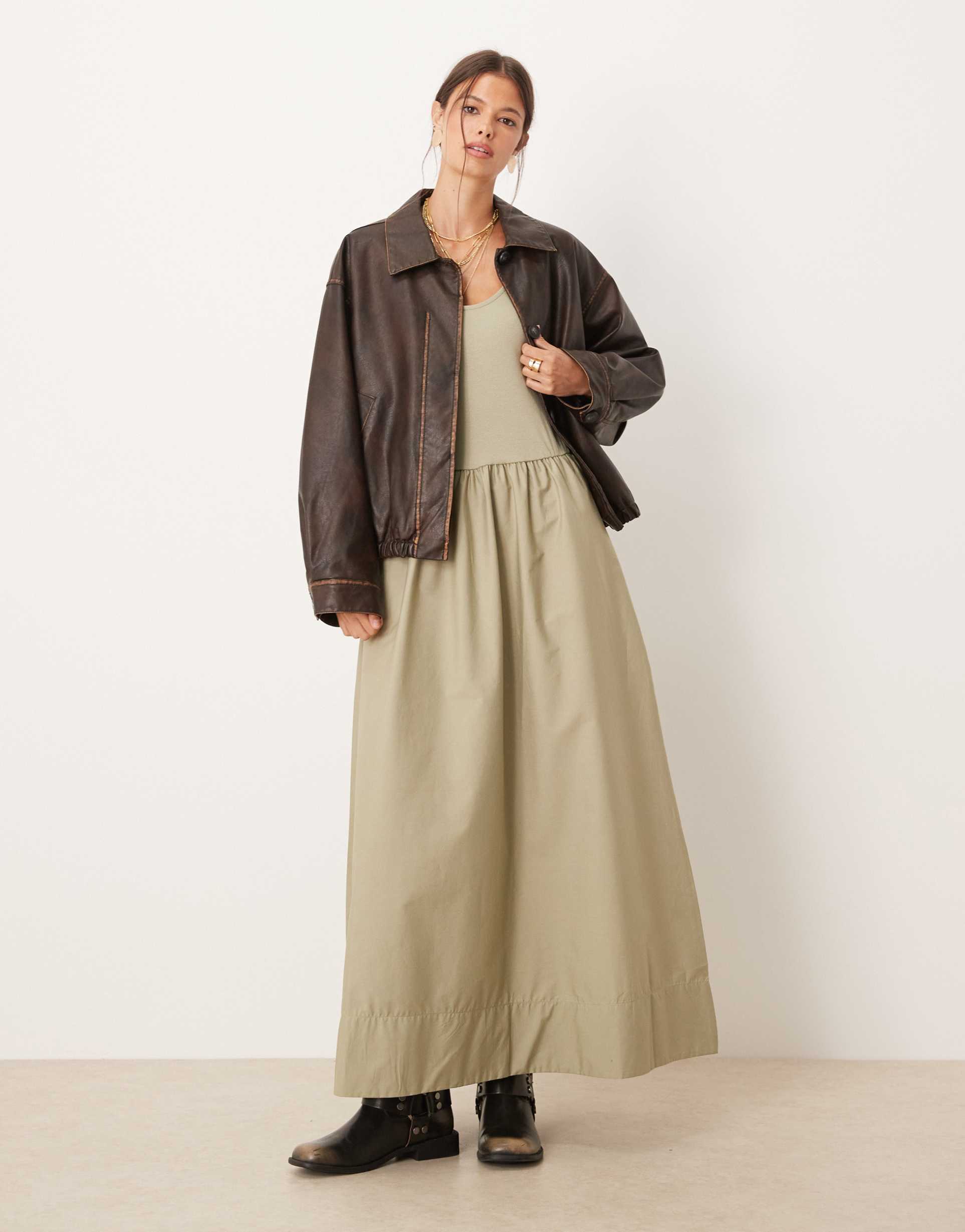 MANGO COTTON DROP WAIST MAXI DRESS IN KHAKI