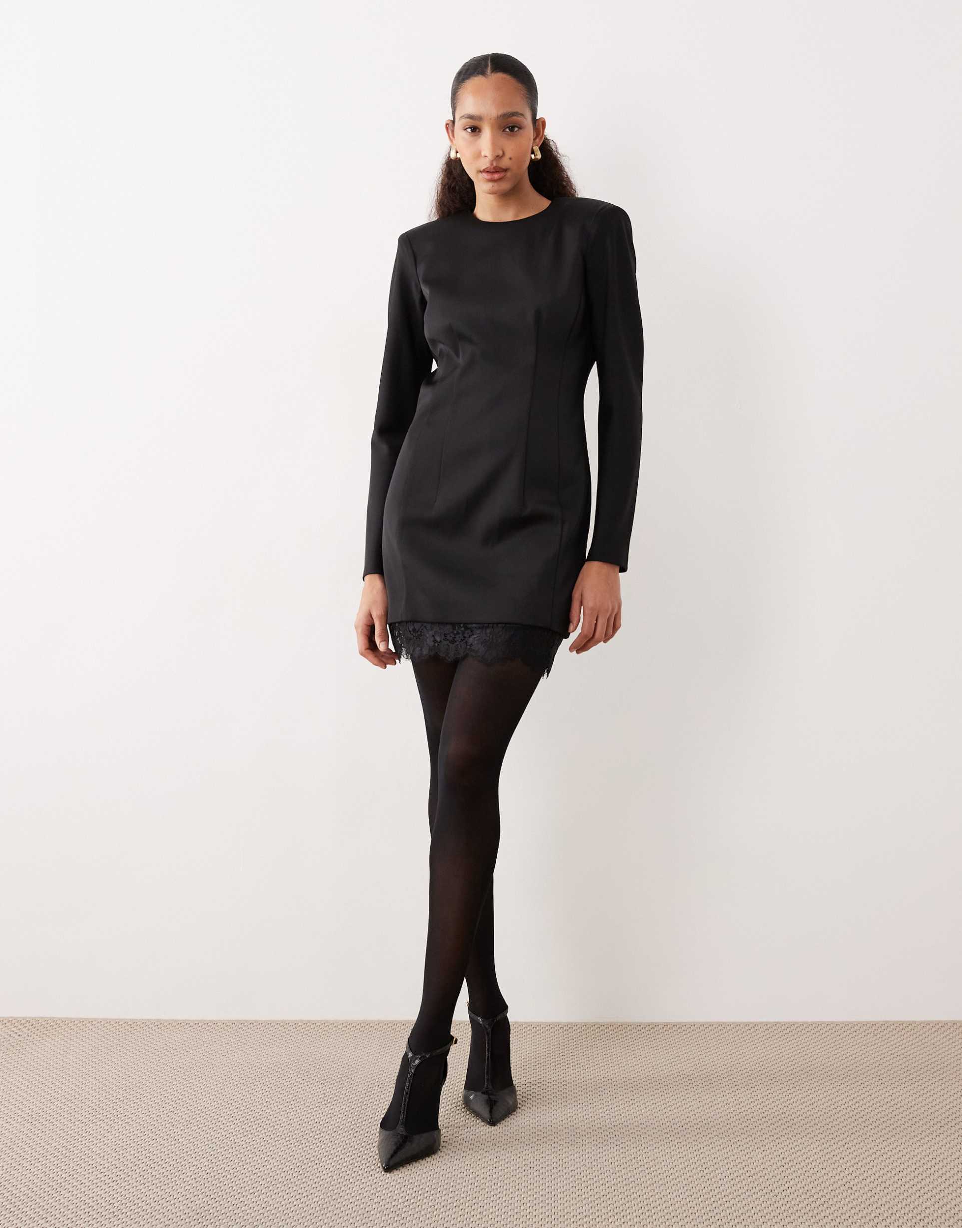 MANGO LONG SLEEVE MINI DRESS WITH LACE HEM IN BLACK