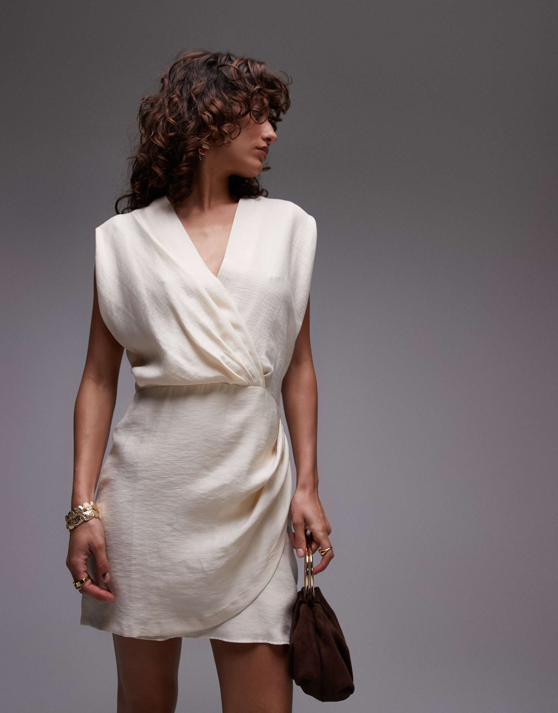 beige wrap mini dress