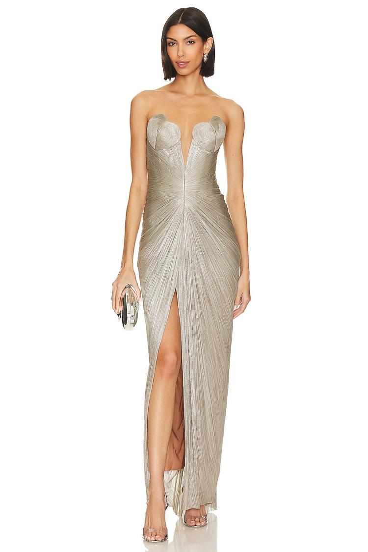 metallic silver evening gown