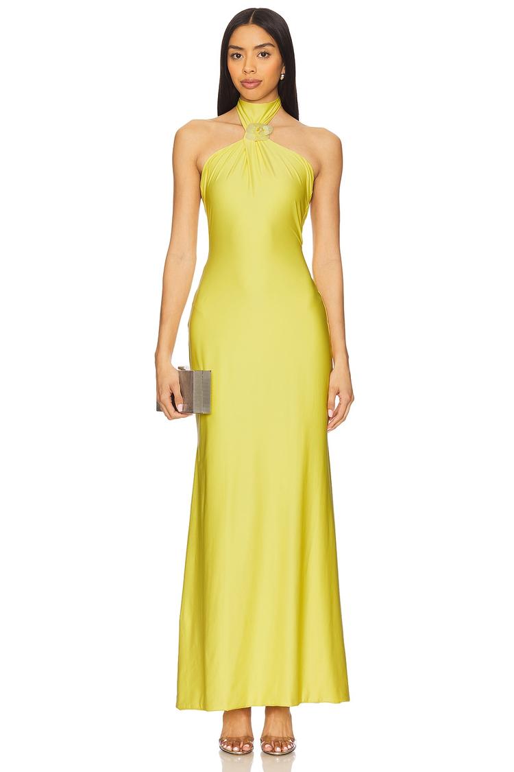 yellow halter neck maxi dress