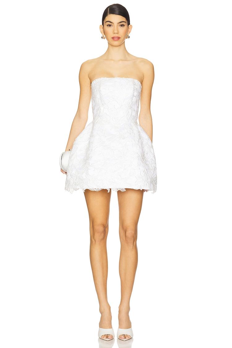 Delicate lace and floral embroidery define this strapless A-Line mini dress, featuring a boned bodice for a fitted silhouette that flatters the figure. The hidden back zipper with hook and eye closure ensures a seamless look, while the clean hemline completes the elegant design. Ideal for spring and summer cocktail parties, semi-formal events, and wedding guest attire, this fully lined dress blends romantic detail with sophisticated style.