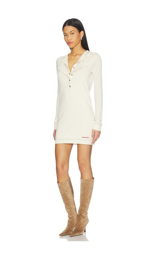 MARKGONG SHEATH HENLEY NECKLINE DRESS IN WHITE.