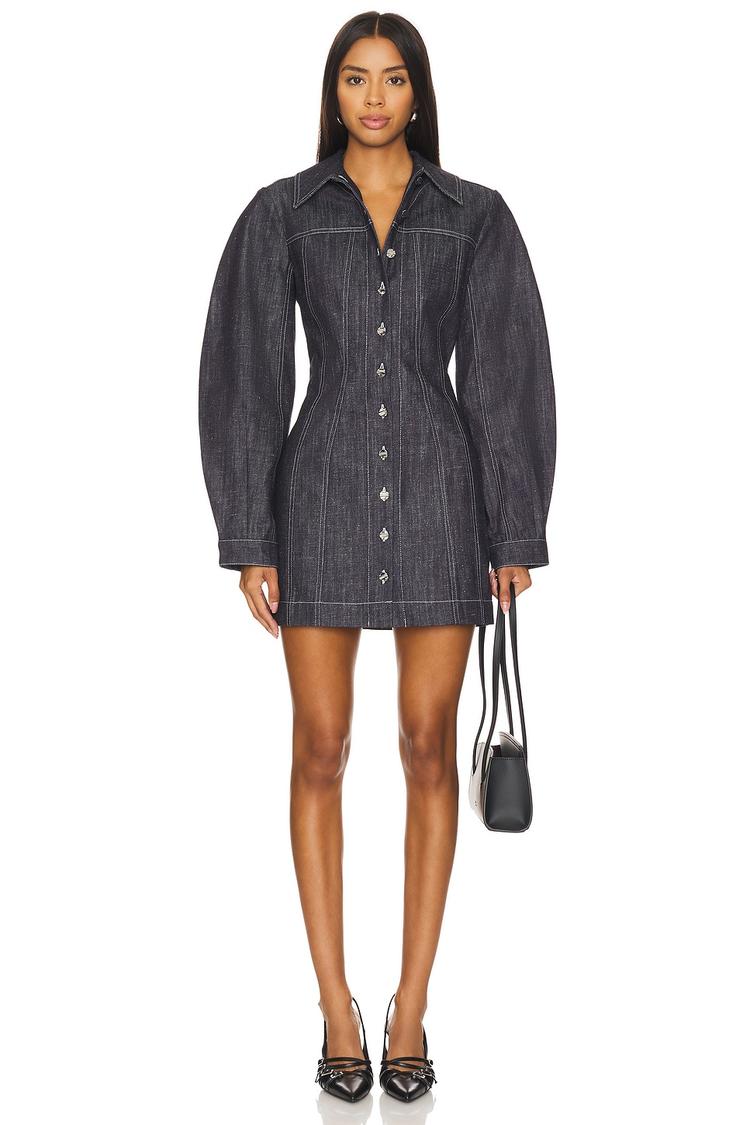 Structured denim fabric defines this fitted mini dress with a classic collar and long cuffed sleeves. The front button closure adds minimalist detailing while the clean hemline and seamed silhouette enhance its casual chic appeal. Perfect for spring to autumn wear, this versatile shift dress suits casual outings, brunch dates, and streetwear styles. Crafted from 100% cotton denim, it offers comfort with a contemporary edge and easy styling for day-to-night occasions.