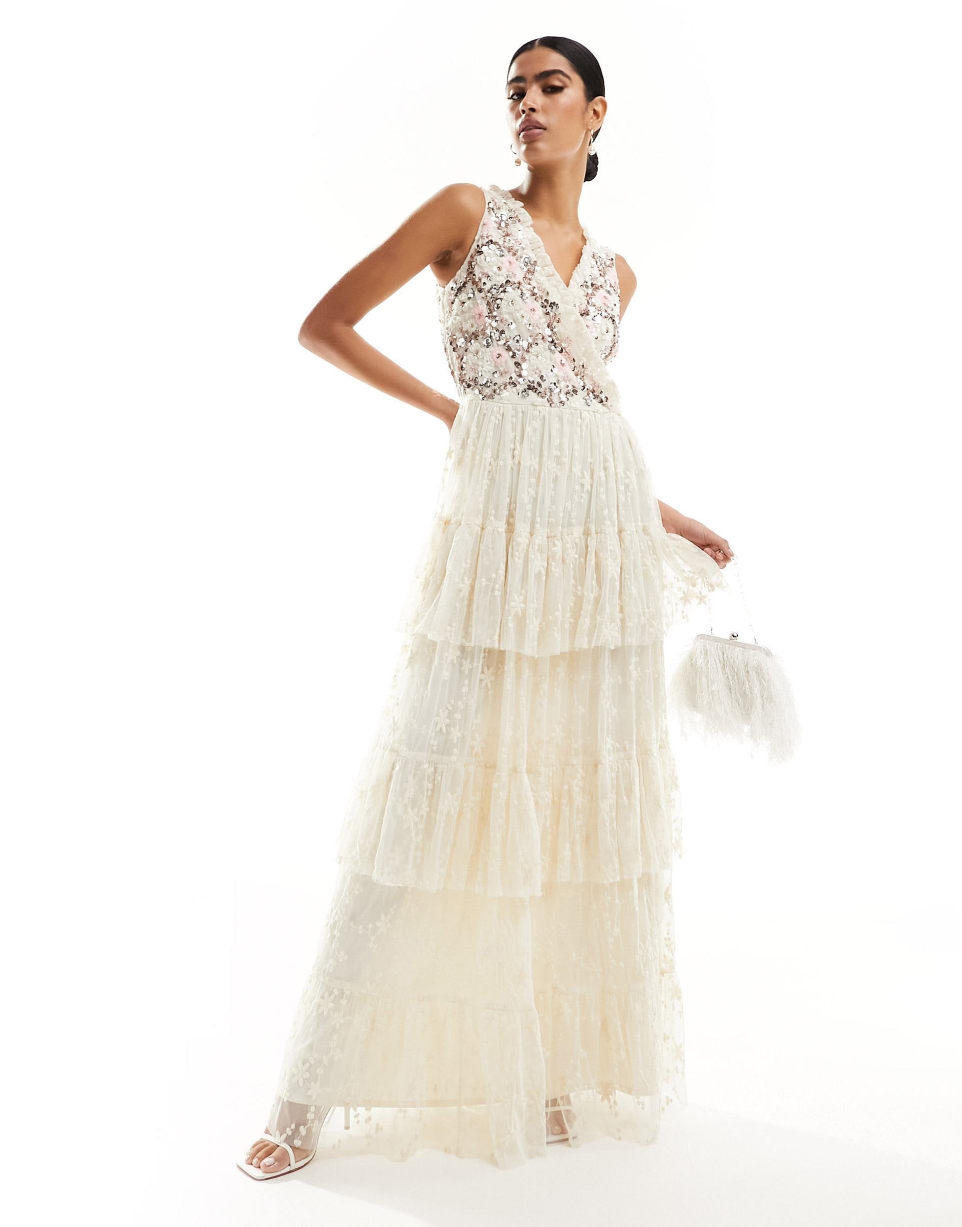 MAYA EMBELLISHED TIERED MAXI DRESS IN CREAM