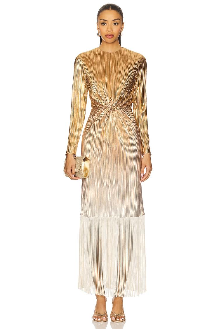 metallic gold evening dress