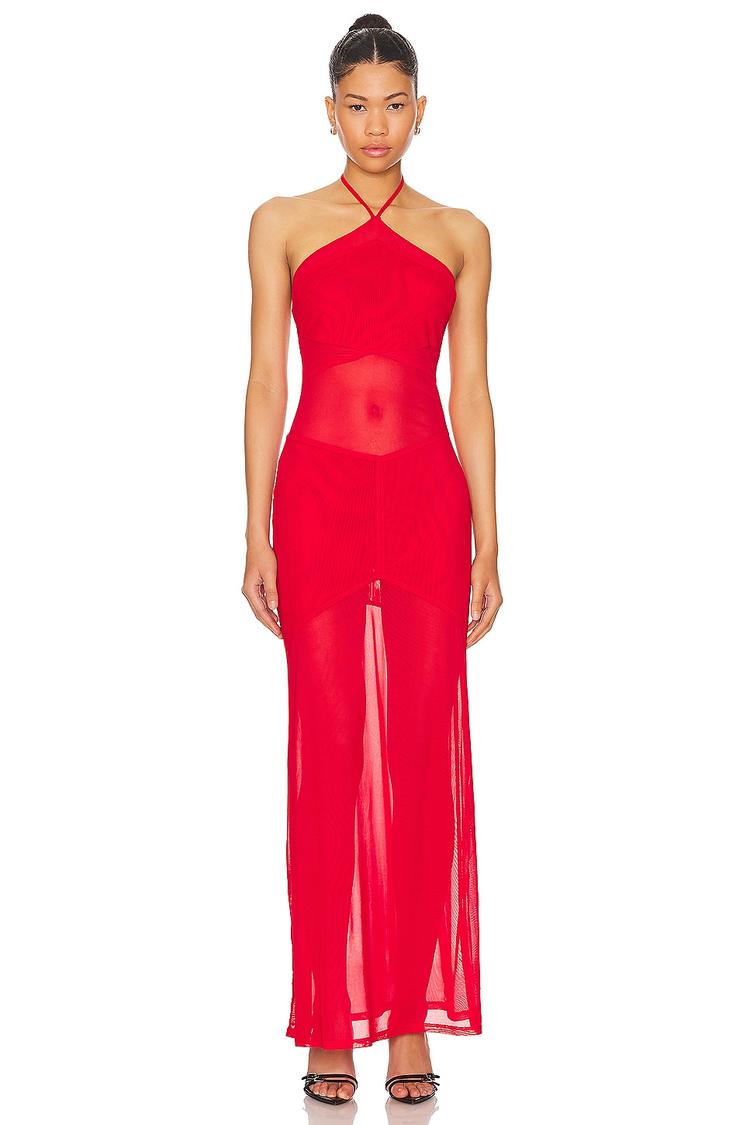 A sleek halterneck silhouette crafted from stretchy nylon and elastane blends effortlessly contours the body in this vibrant red maxi slip dress. Sheer panels add a hint of allure, while the hidden side zipper and tie-back closure enhance the minimalist design. Perfect for summer and spring evenings, its slim fit and strapless style make it ideal for cocktail parties, date nights, and night outs where understated sophistication is key.