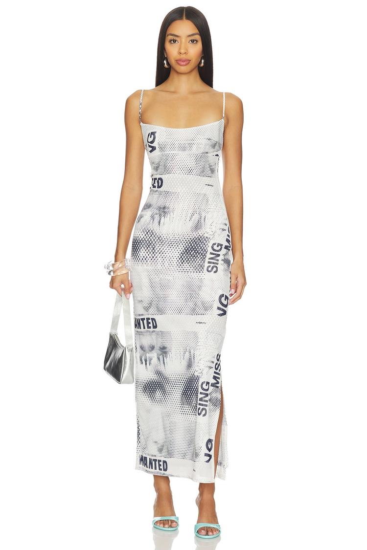 Modern and sleek, this midi slip dress features a straight neckline and slender spaghetti straps that highlight a bodycon fit. Crafted from stretchy recycled polyester and elastane, it offers comfort and shape while the graphic print adds an edgy, contemporary vibe. A hidden side zipper and side slit hem enhance wearability and style. Perfect for spring and summer occasions like date nights, cocktail parties, or nights out, this versatile dress combines minimalist elegance with a bold, artistic touch.