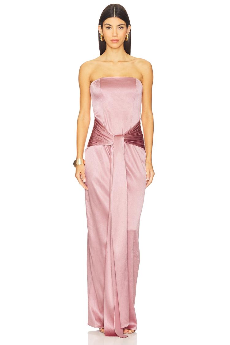 Soft shimmer light pink satin fabric shapes a fitted column silhouette with a straight strapless neckline and clean slit hemline. The boned bodice and front draped detailing enhance the elegant design, perfect for gala evenings, formal events, or cocktail parties. Fully lined with a hidden back zipper, this heavyweight satin gown ensures a sophisticated fit and graceful flow from neckline to hem. Ideal for all weather seasons, it delivers timeless glamour with a contemporary edge.