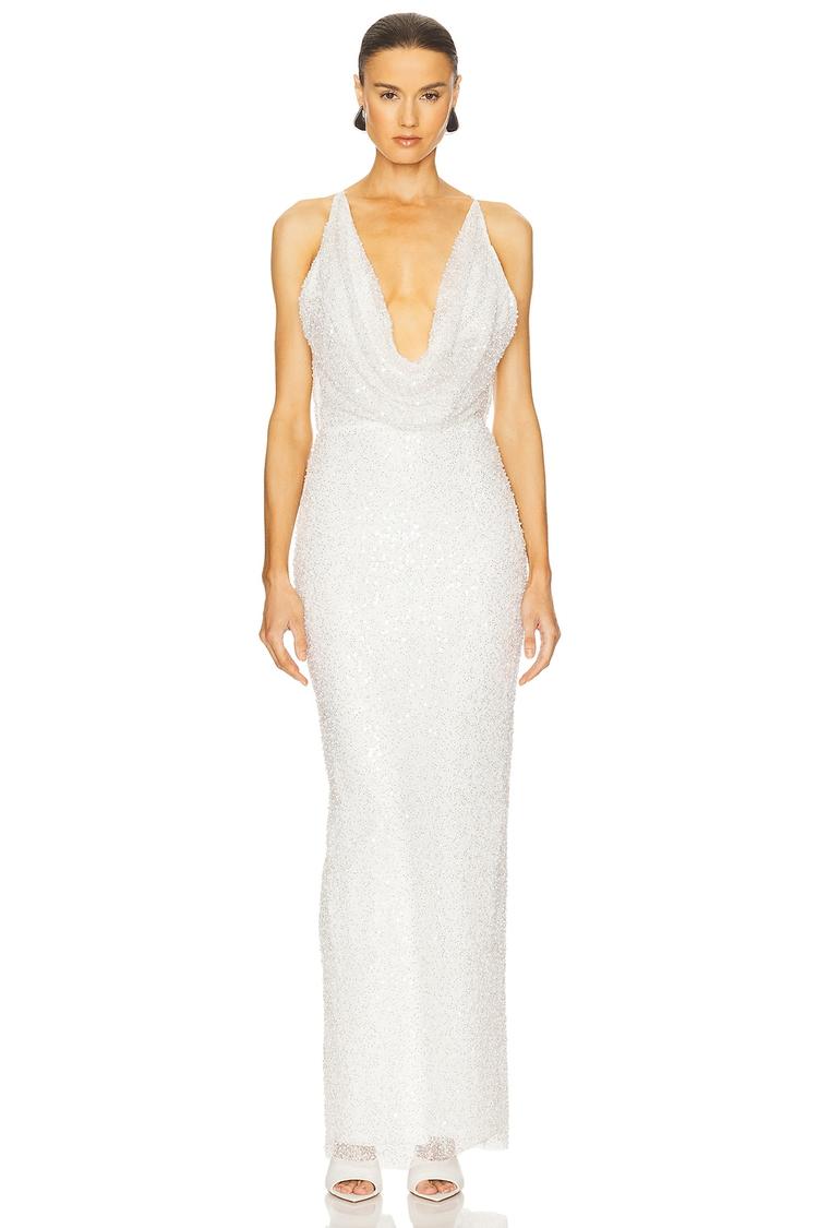 white cowl neck maxi dress