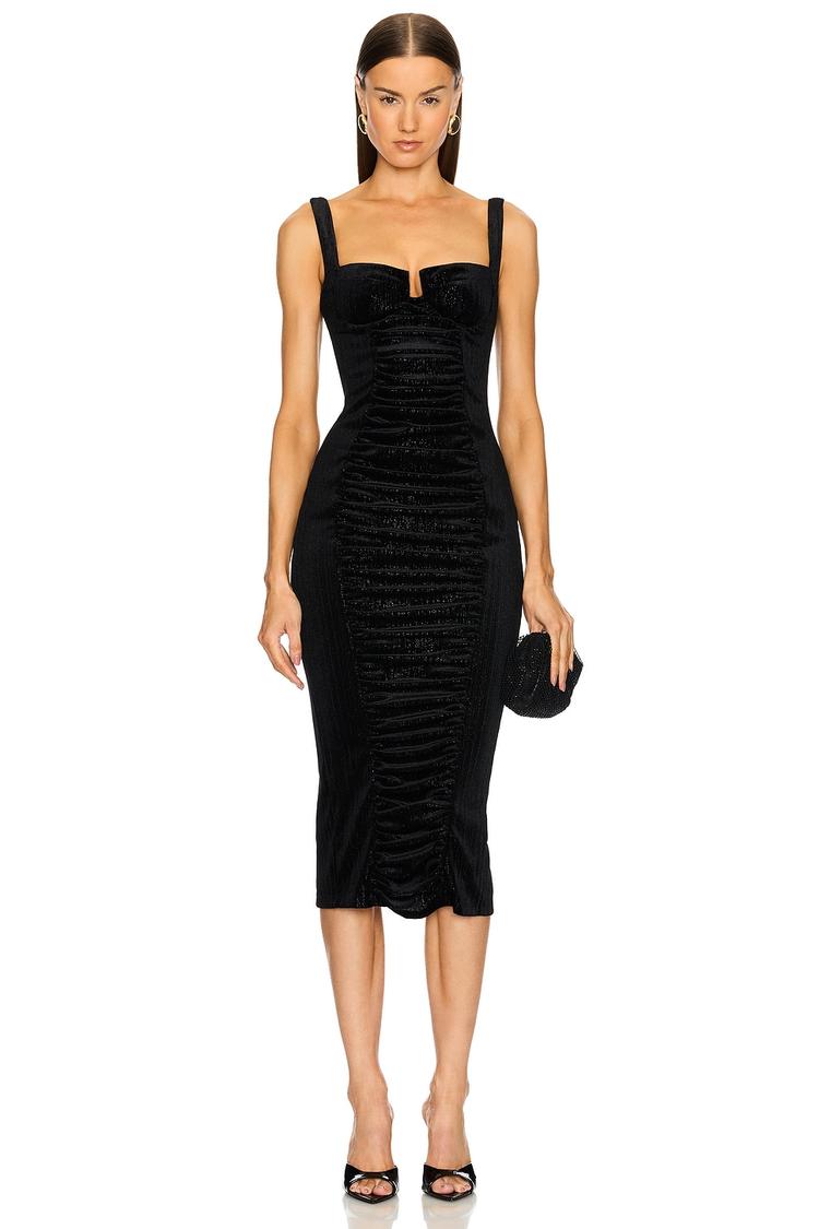 A figure-hugging silhouette crafted in sumptuous velvet with subtle metallic threading offers a sleek and sophisticated look. This midi sheath dress features a flattering U-neckline and wide straps, creating an elegant yet sexy profile. The concealed back zipper ensures a smooth fit, while the slit hemline adds a touch of allure. Fully lined for comfort, this bodycon dress is perfect for date nights, cocktail parties, or upscale evening events, combining luxurious fabric with timeless style.