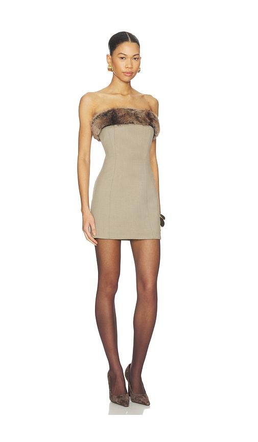 MIMCHIK FAUX FUR TRIMMED GUMDROP DRESS IN BEIGE.