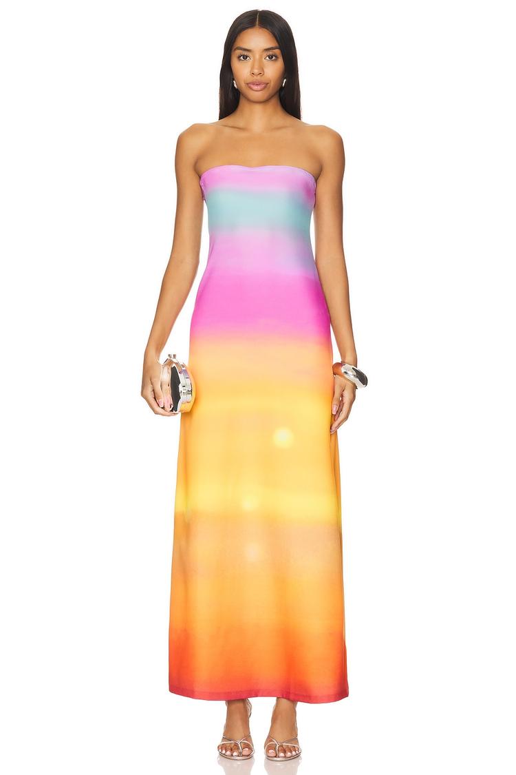 Soft cotton and rayon blend fabric drapes effortlessly in a slim column silhouette with a straight, strapless neckline, perfect for warm spring and summer days. The maxi length flows elegantly with a clean hemline, while vibrant color-blocked stripes in pink, light blue, yellow, and orange create a playful yet chic look. Ideal for casual outings, brunch dates, or vacation getaways, this dress offers easy slip-on wearability combined with a flattering, slim fit that enhances natural curves for a laid-back boho chic style.