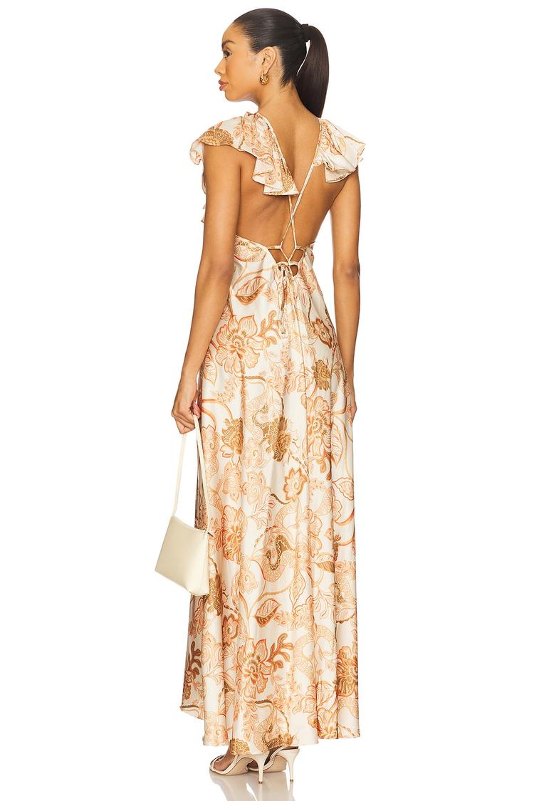 Sunlit afternoons and elegant evenings come alive with this flowing maxi wrap dress crafted from midweight satin polyester. Featuring a deep neckline and romantic ruffled cap sleeves, it gracefully ties at the back for a flattering fit. The soft cream base is adorned with a subtle matte tan floral print, enhancing its chic and elegant vibe. Ideal for brunch, date nights, or cocktail events, its flared silhouette and clean hemline offer both comfort and sophistication across spring and summer seasons.