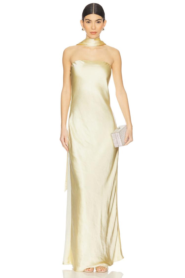 Soft satin fabric with a subtle sheen creates a sleek, column silhouette in this elegant maxi gown. The high neckline features a unique wrapping sash detail that extends from the side and cascades down the back, adding sophisticated draping to the sleeveless design. A hidden back zipper closure ensures a smooth fit along the slim silhouette. Perfect for formal events, cocktail parties, and wedding guest occasions, this polished satin gown offers timeless style and refined grace for all seasons.