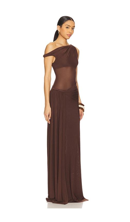 MISHA SISAL MAXI DRESS IN CHOCOLATE.