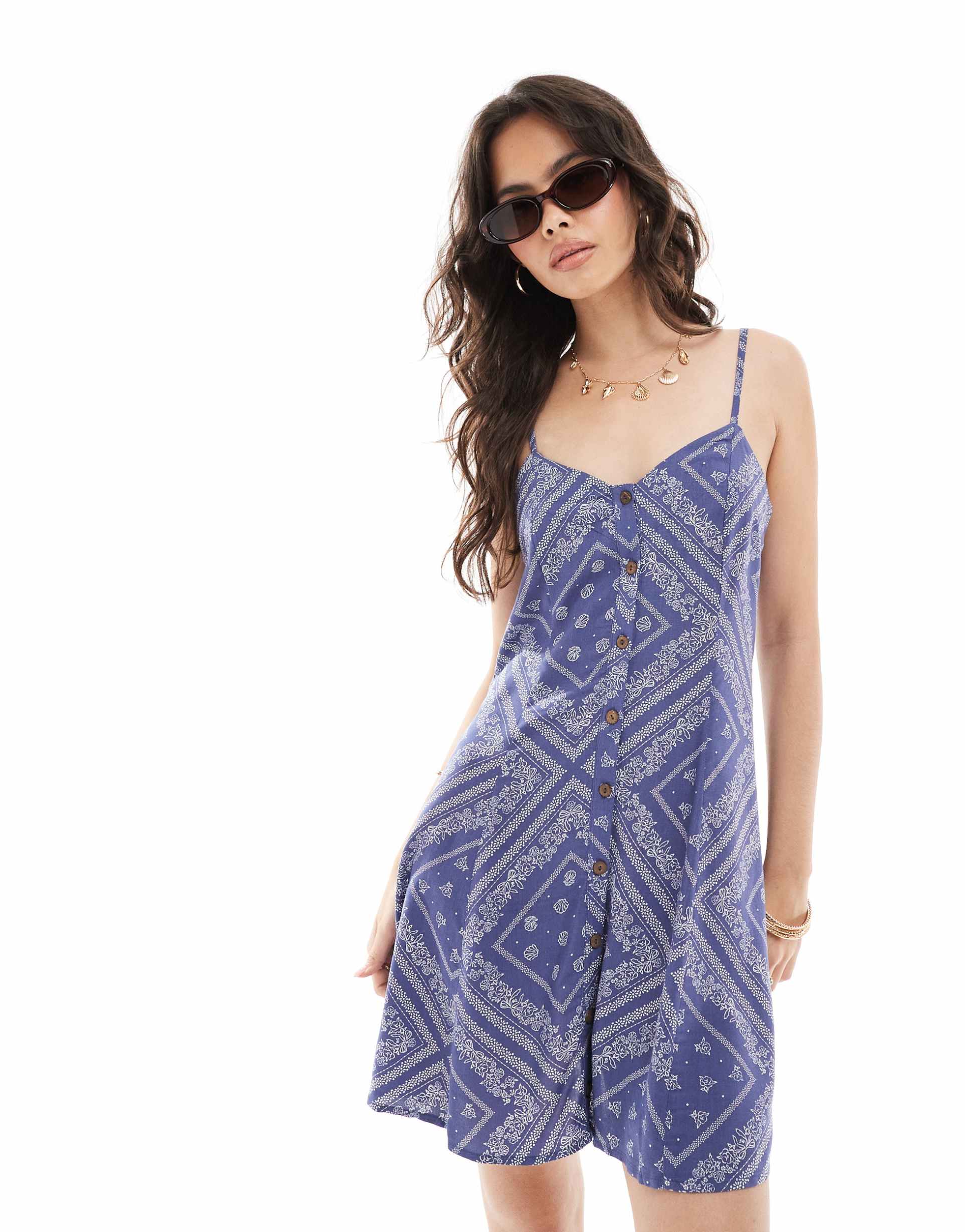 MISS SELFRIDGE BUTTON THROUGH SPUN MINI DRESS IN BLUE SCARF PRINT