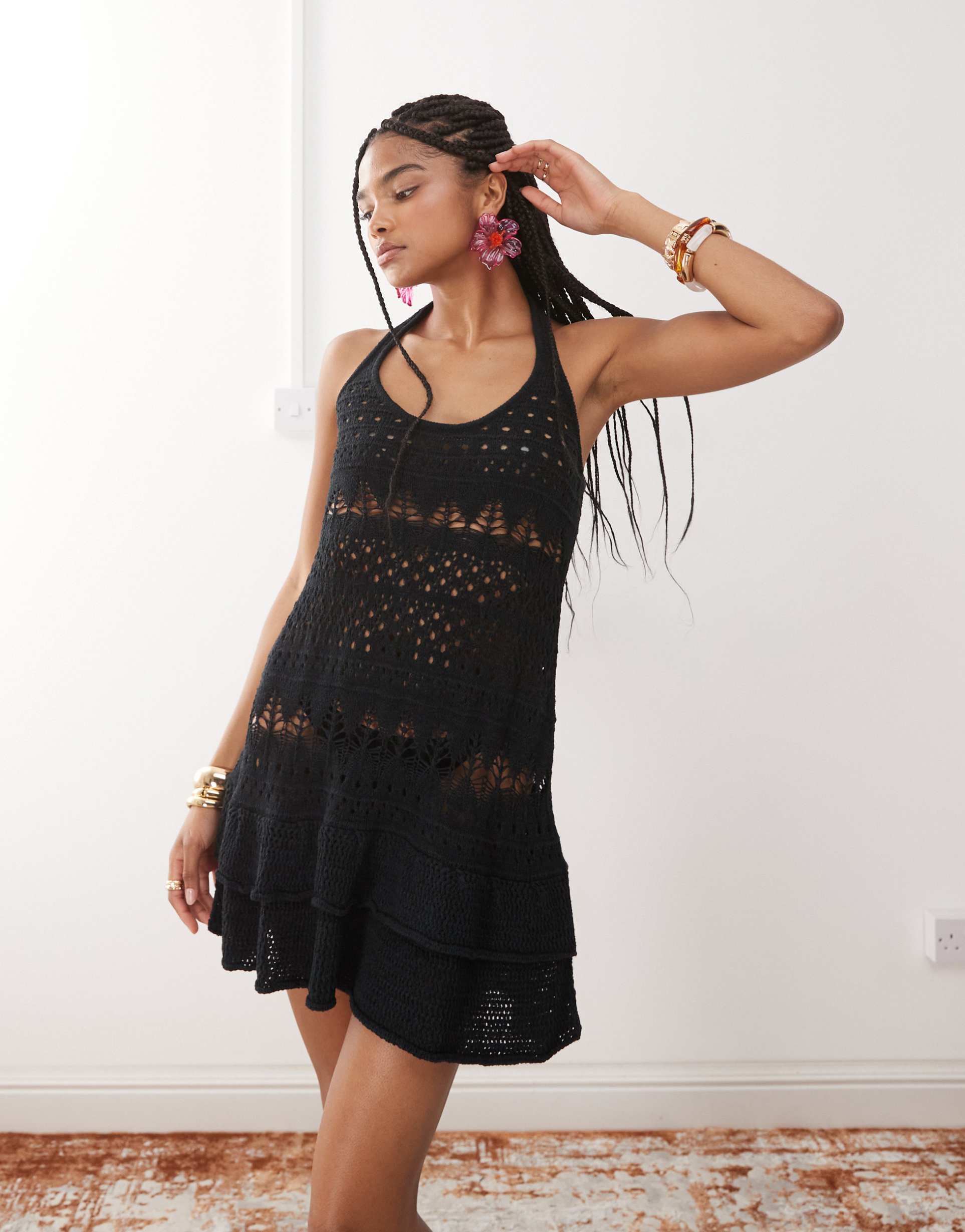 black crochet mini dress