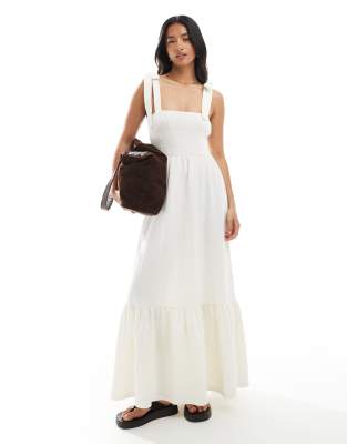 MISS SELFRIDGE PETITE SEERSUCKER TIE SHOULDER TIERED MAXI DRESS IN VANILLA