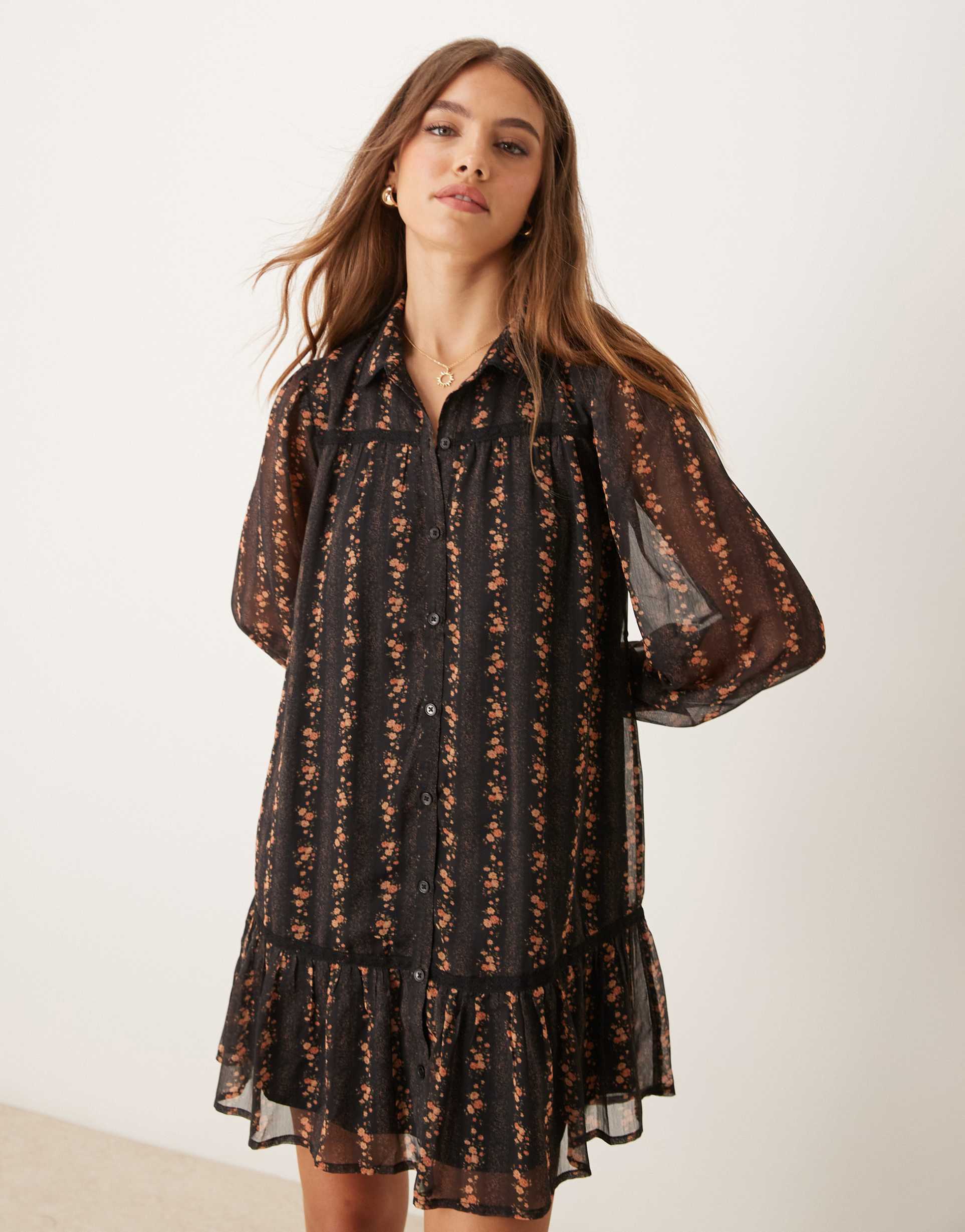 MISS SELFRIDGE SHIRT DRESS WITH TRIM DETAIL IN DITSY FLORAL PRINT