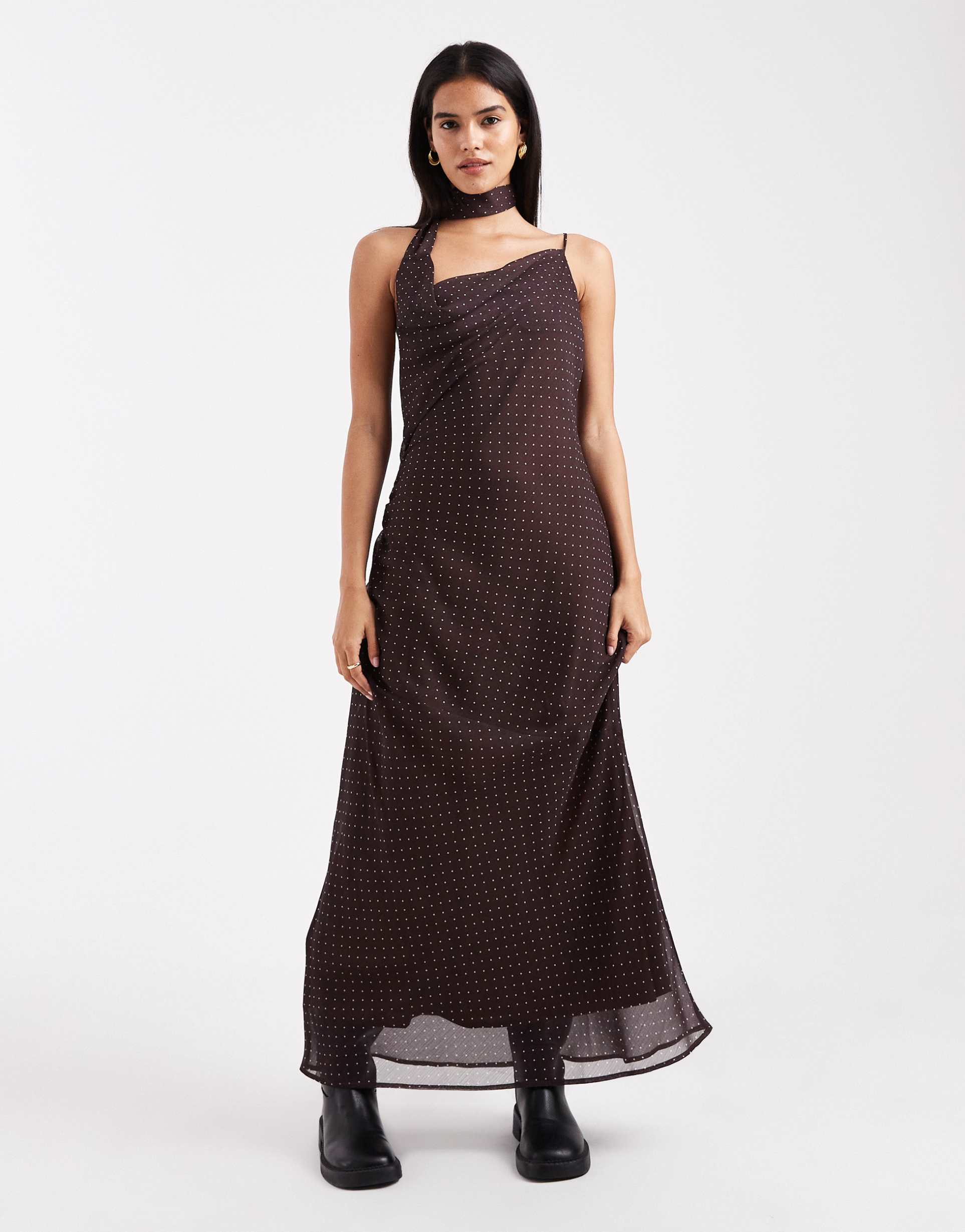 MISS SELFRIDGE TIE NECK COWL MAXI DRESS IN POLKA DOTS