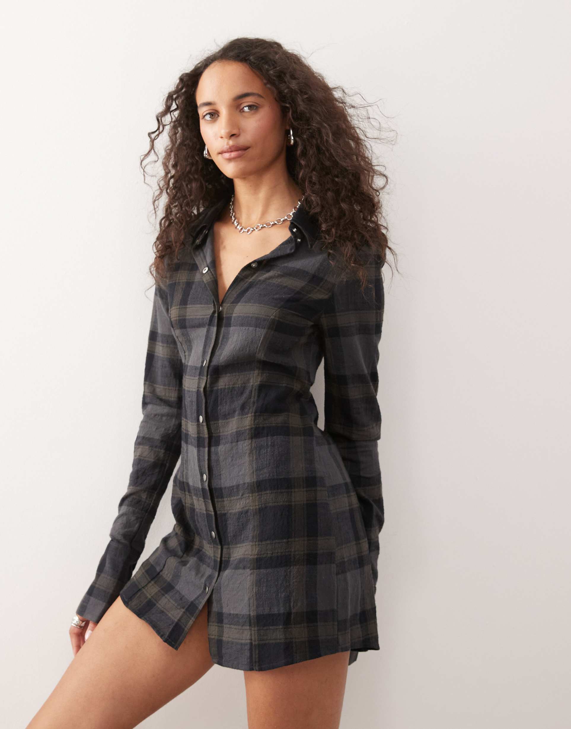 checkered mini shirt dress