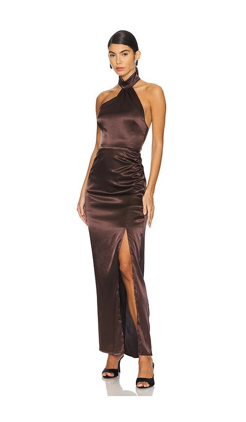 MORE TO COME DARCEY MAXI DRESS IN BROWN.
