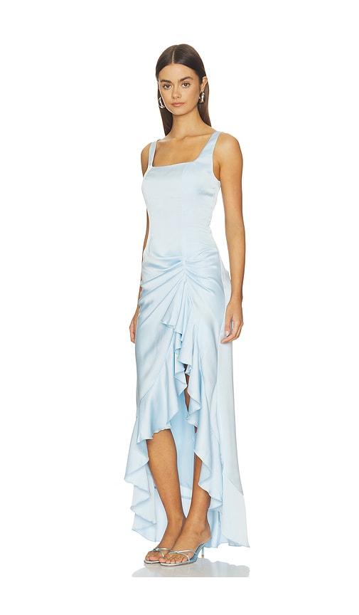 MORE TO COME PHOEBE RUFFLE MAXI DRESS IN BABY BLUE.