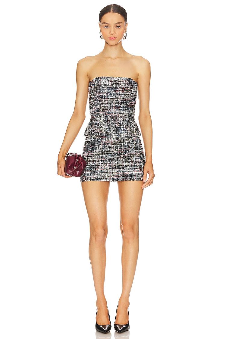 A sleek strapless silhouette in mini length crafted from textured woven polyester tweed delivers a chic and modern look. The fitted bodice with boned sides enhances the shape, while a side zipper ensures a smooth finish. The checkered pattern in black, white, red, and blue colors adds vibrant visual interest, making this shift dress ideal for night outs, cocktail parties, and girls’ nights. Fully lined for comfort, this versatile piece embraces contemporary style and effortless sophistication.