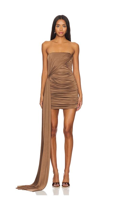 MOTHER OF ALL DELORES MINI DRESS IN BROWN.