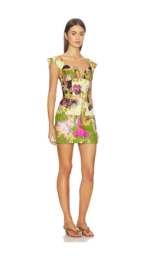 MUMA WORLD MIXED CANOPY CELINE MINI DRESS IN GREEN,LEMON.