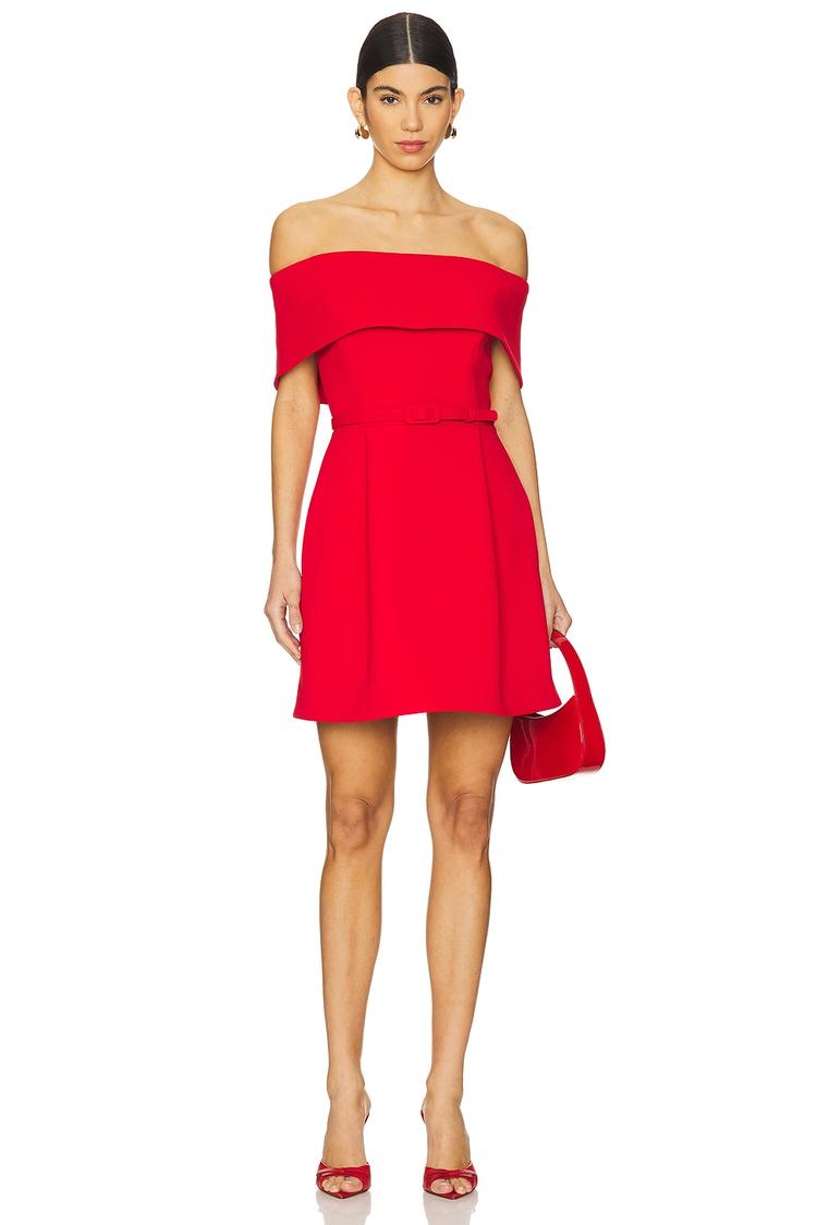 red off-shoulder mini dress