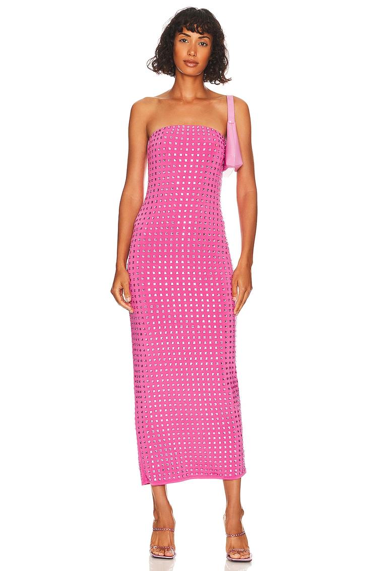 fitted pink midi dress