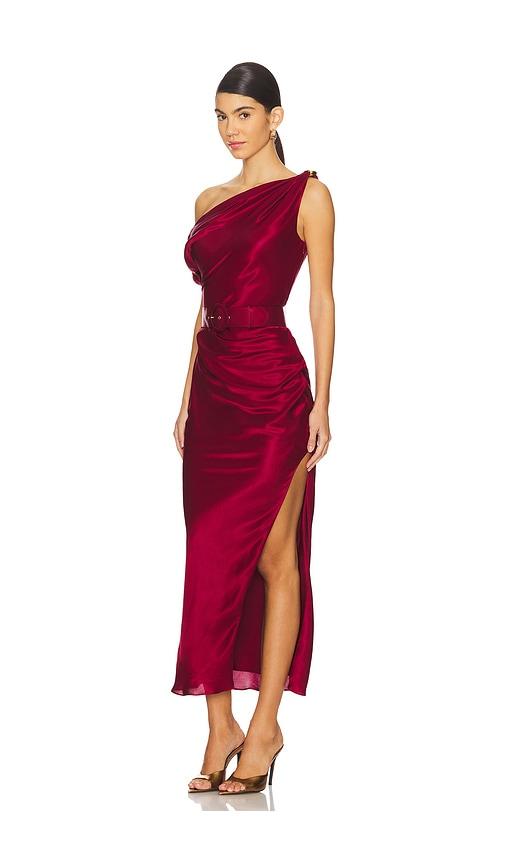 NICHOLAS HALLE OFF THE SHOULDER DRESS IN BURGUNDY.