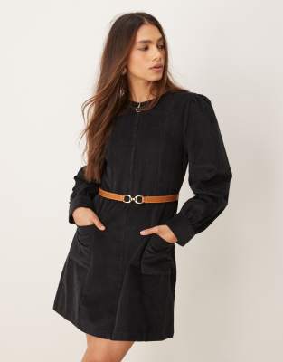 NOBODY'S CHILD HIGHGATE CORD MINI DRESS WITH ZIP DETAIL IN BLACK