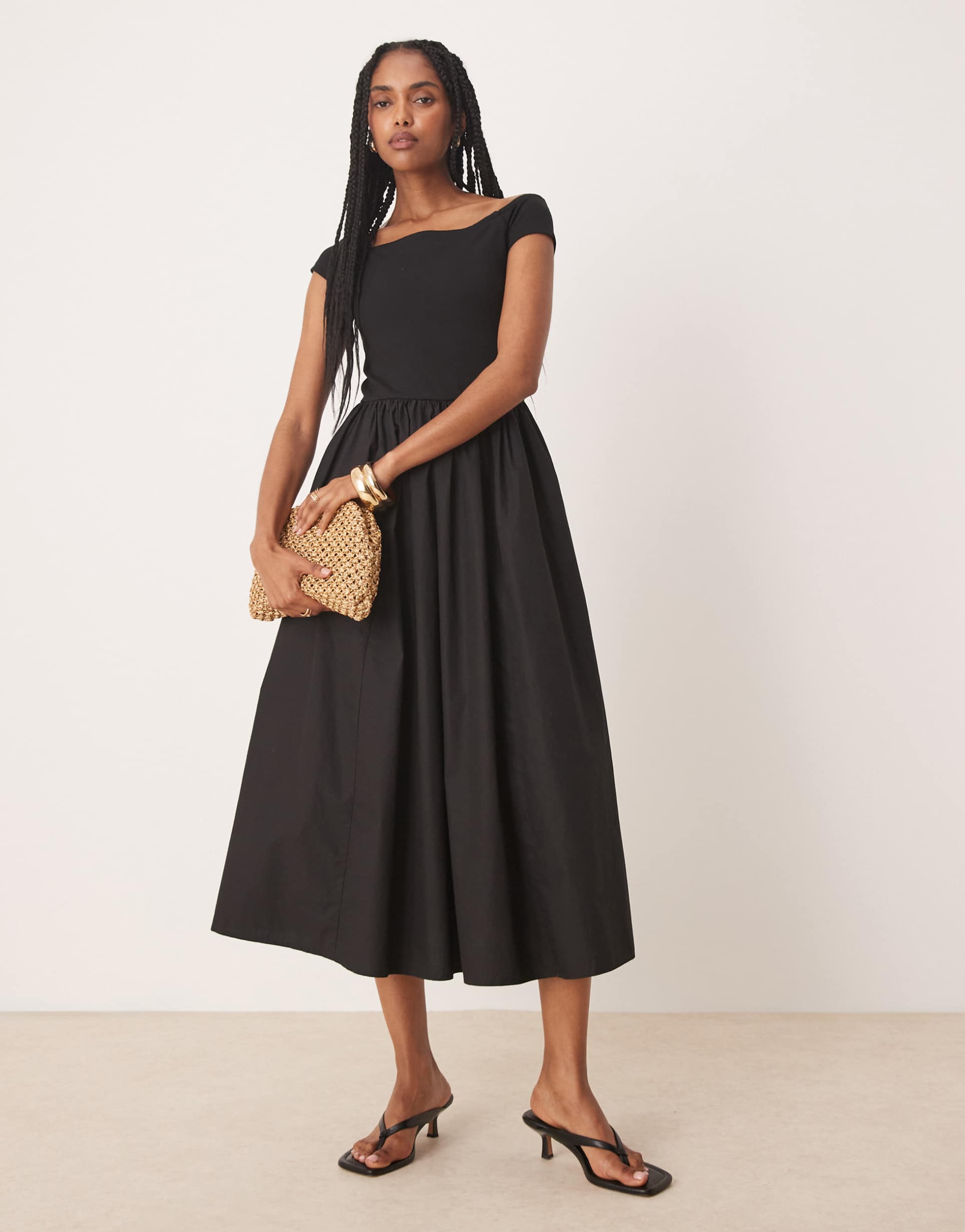 black off shoulder midi dress