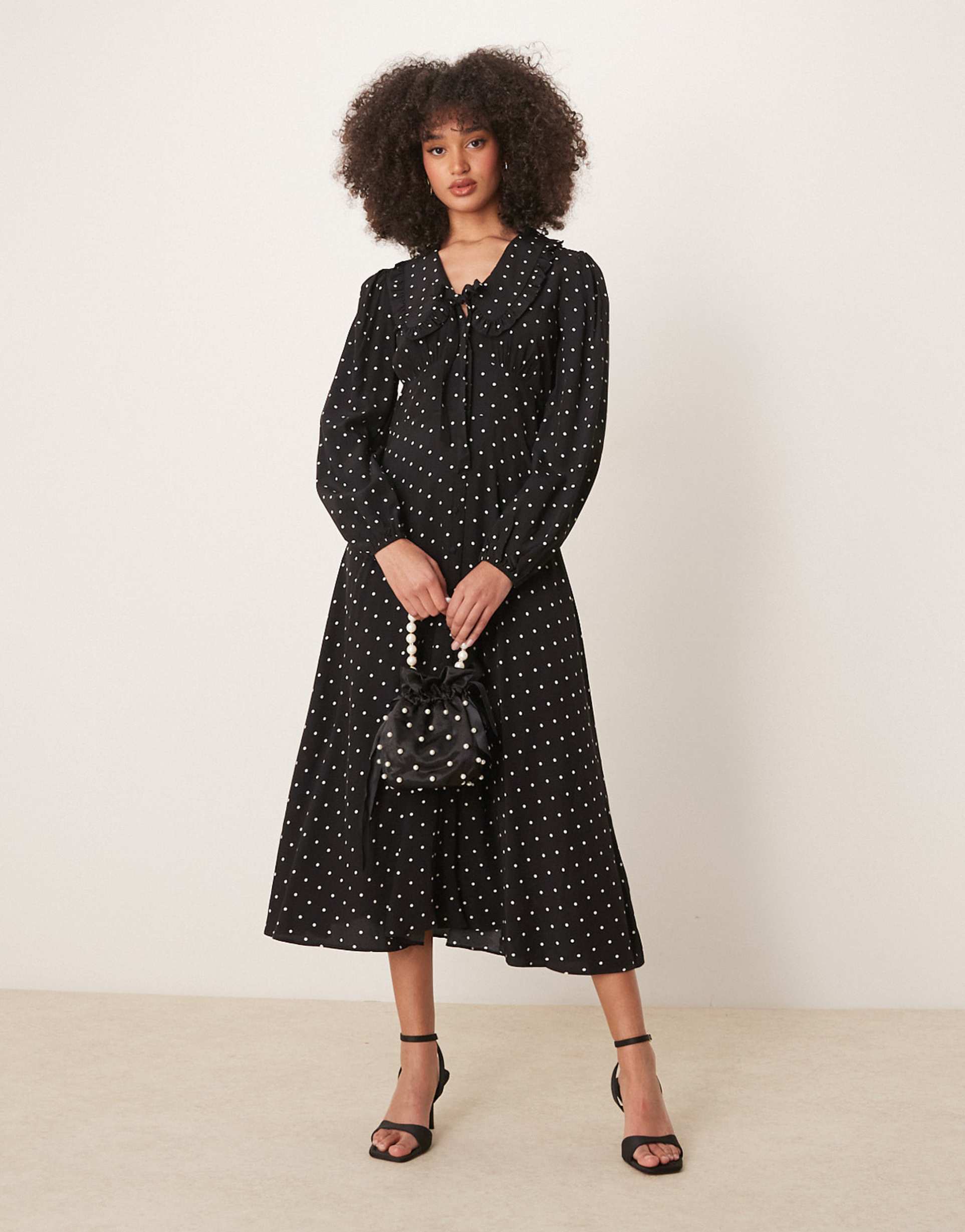 NOBODY'S CHILD OTILLIE MIDI DRESS IN BLACK AND WHITE SPOT