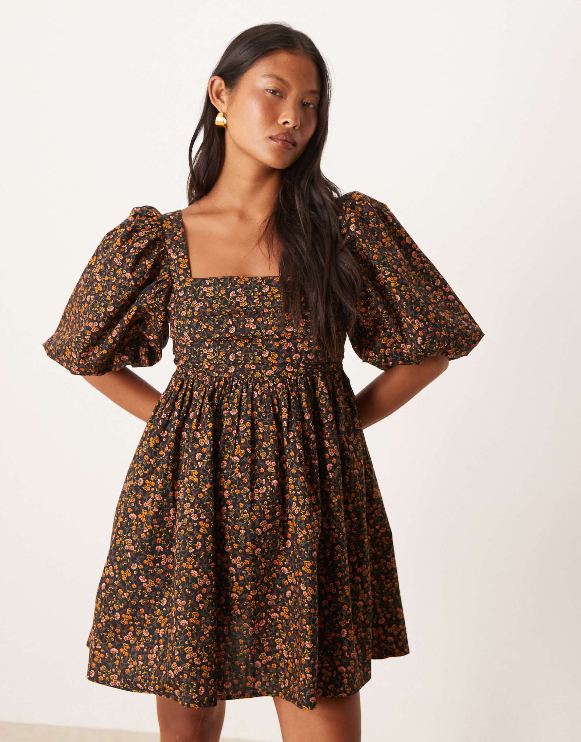 dark floral babydoll dress