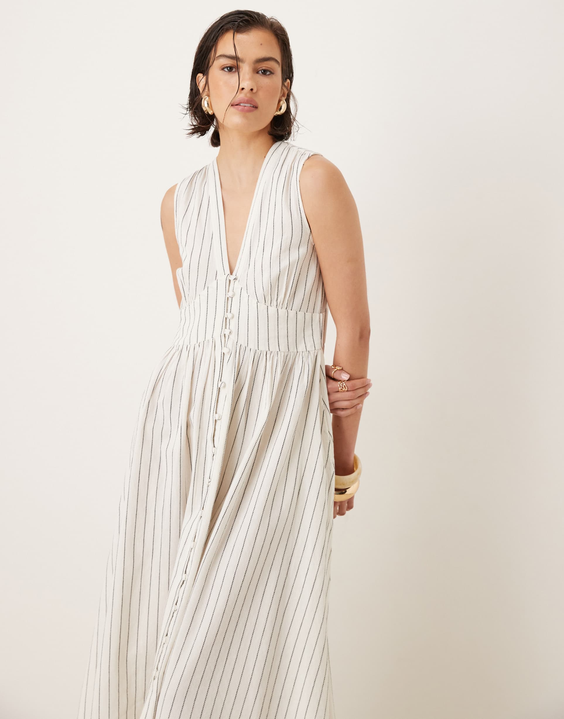 NOBODY'S CHILD STARLIGHT MIDI DRESS IN CREAM PINSTRIPES