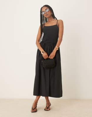 NOBODY'S CHILD STRAPPY MIDI DRESS WITH V-WAIST IN BLACK
