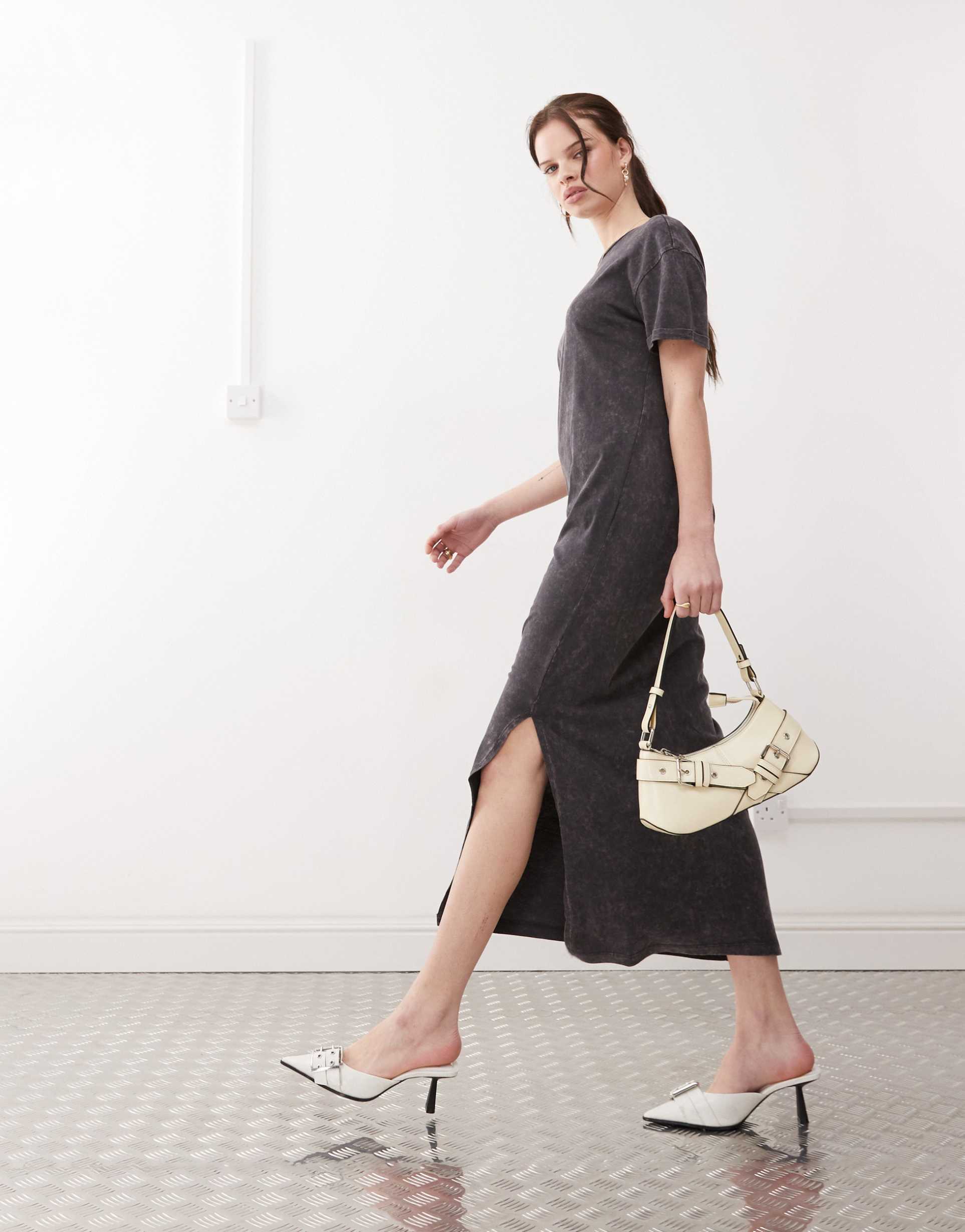 NOISY MAY MIDAXI SPLIT T-SHIRT DRESS IN WASHED GRAY