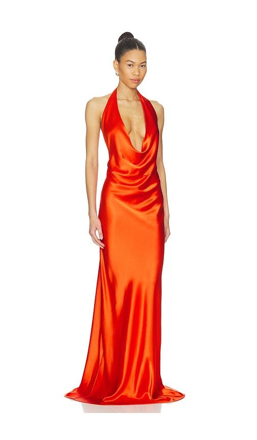 NONCHALANT LABEL THEODORA DRESS IN ORANGE.