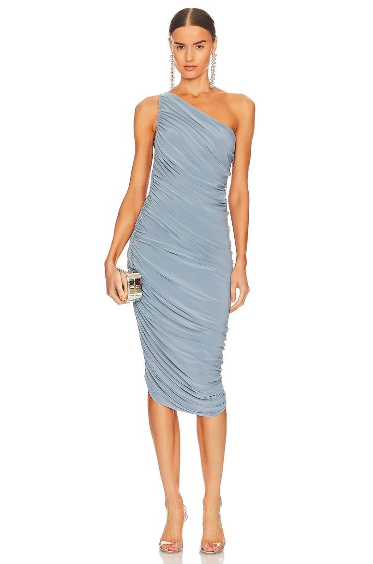 A striking one-shoulder sheath dress in a soft matte light blue fabric embraces a bodycon fit with elegant ruching details all over. The sleeveless silhouette and midi length create a sophisticated look ideal for cocktail parties, date nights, or evenings out. Crafted from a blend of polyester and spandex, this dress offers comfortable stretch and a sleek finish. The clean hemline complements the modern, sexy design, while the built-in bodysuit ensures a flawless fit and pull-on ease for effortless style.