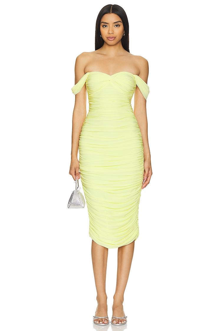 yellow bodycon midi dress