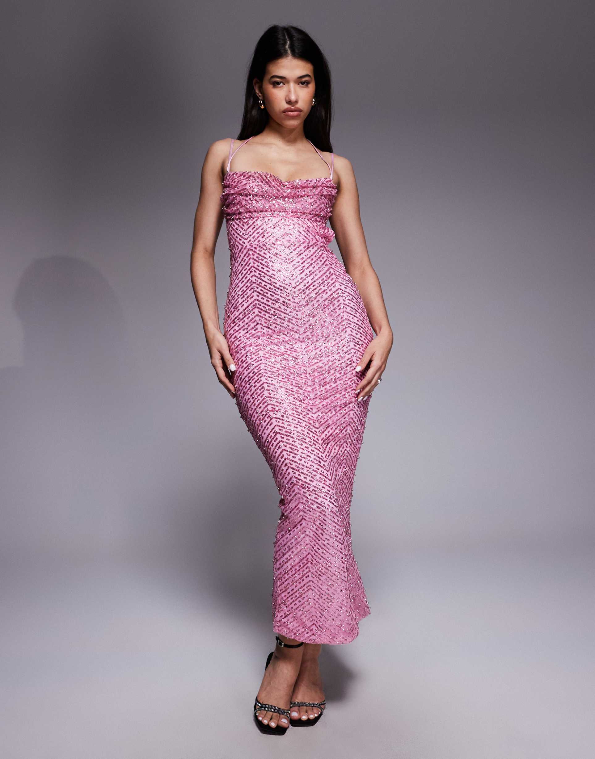 OH POLLY SWEETHEART NECKLINE MAXI DRESS IN PINK CRYSTALS