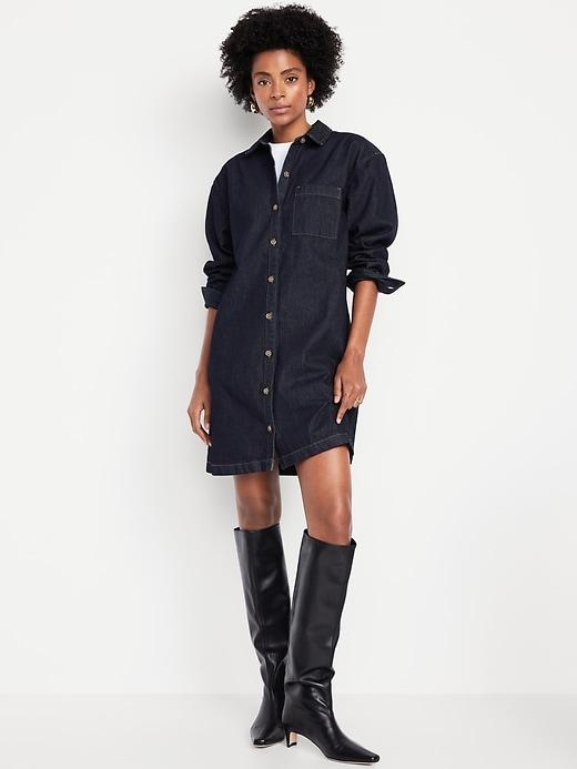 LONG-SLEEVE DENIM MINI SHIRT DRESS