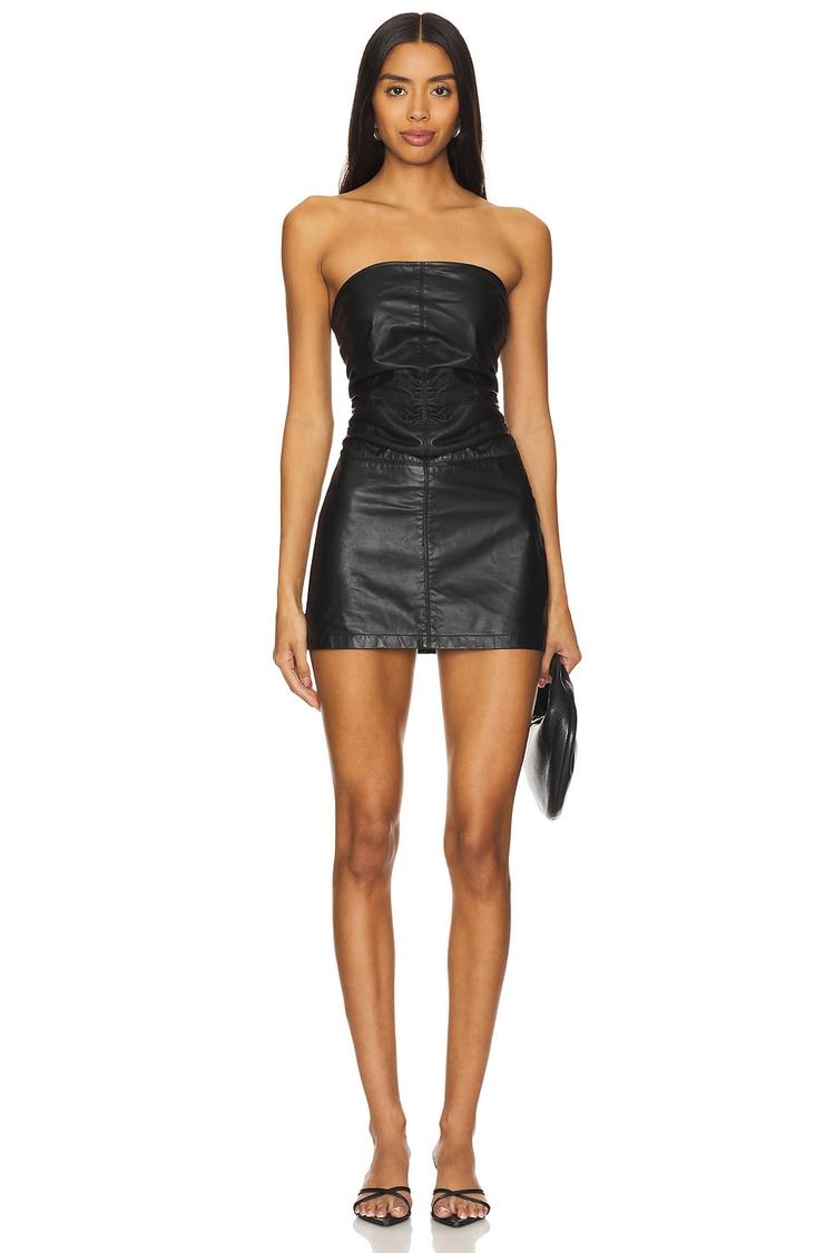 Sleek and edgy, this black leather strapless tube dress offers a figure-hugging sheath silhouette perfect for evening occasions. The mini length pairs with a clean hemline, while the back zipper ensures a smooth fit. Crafted from midweight sheep leather with a polyester lining, it combines luxury with comfort. Ideal for cocktail parties, date nights, or a night out, this modern and sexy dress makes a bold statement with its minimalist design and strapless neckline.