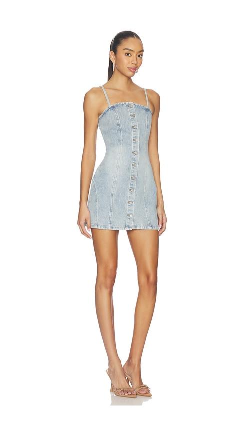 ONE TEASPOON RIVIERA FITTED STRAPPY MINI DENIM DRESS IN BLUE.