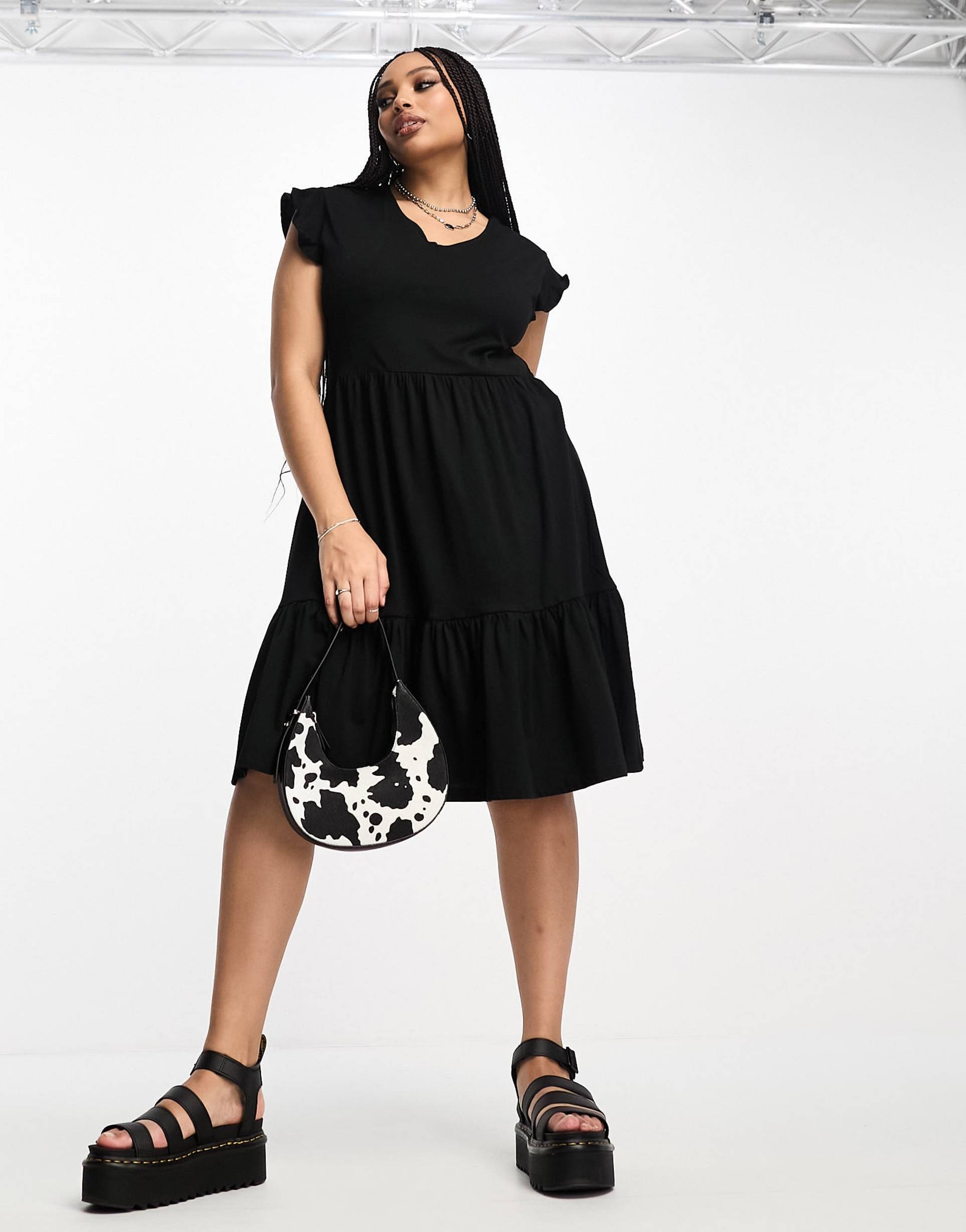 ONLY CURVE TIERED MINI DRESS IN BLACK